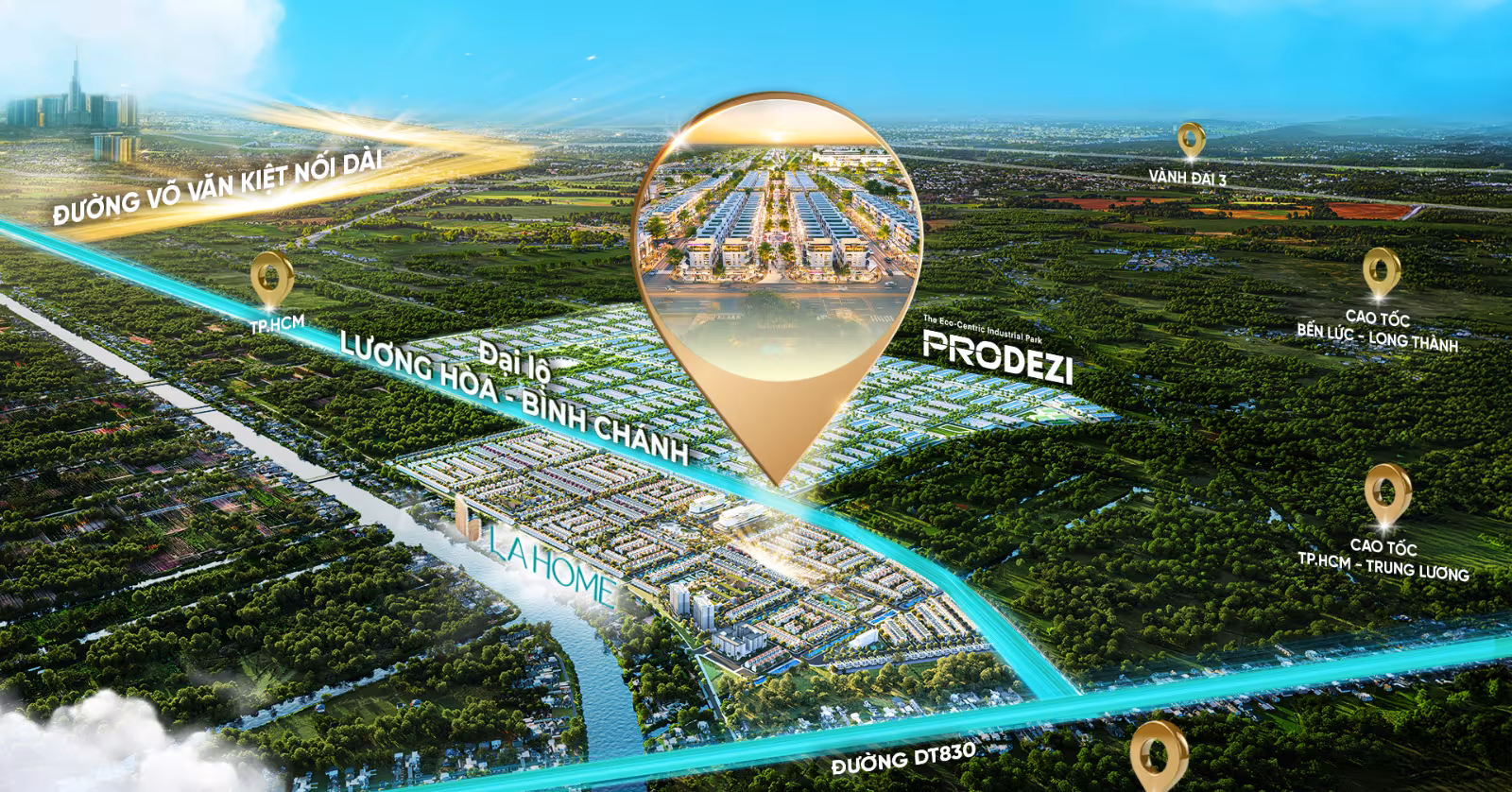 Đại lộ Lương Hòa – Bình Chánh là mặt tiền chính của khu đô thị sinh thái LA Home (100 ha). Dự án được dự báo sẽ thu lợi tối đa từ dự án đường Võ Văn Kiệt nối dài – một phần của trục Đông‑Tây, kéo dài 14,6 km từ cầu vượt Quốc lộ 1 tới ranh giới Long An (nay là Tây Ninh). Khi hoàn thiện, tuyến đường này sẽ kết nối trực tiếp vào Lương Hòa, rút ngắn thời gian di chuyển từ Bến Lức tới trung tâm TP.HCM, biến các khu đô thị vệ tinh phía Tây thành một phần không thể tách rời của Sài Gòn.