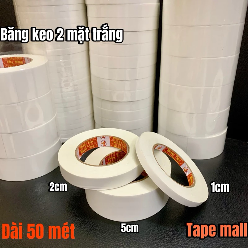 🔥 Băng dính 2 mặt trắng 1cm, 2cm, 5cm x 50m.Hàng CTY chất lượng cao SIZE lớn tiết kiệm [Tape Mall] đang giảm giá!