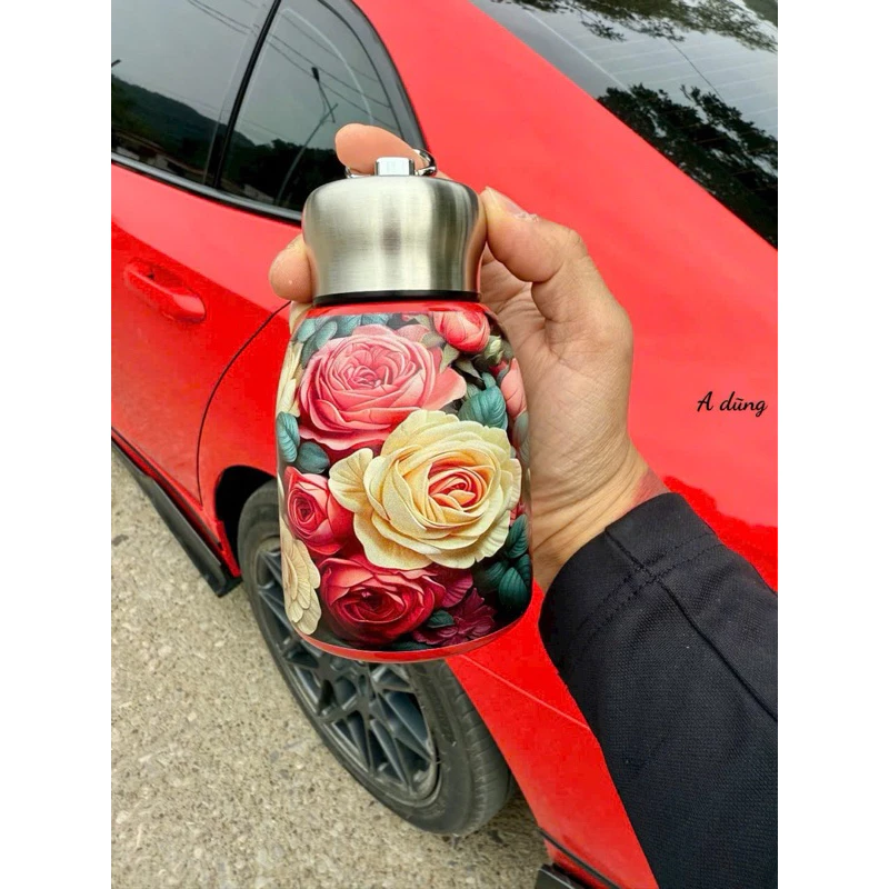 Giới thiệu bình giữ nhiệt inox mini 300ml có quai xách họa tiết hoa vintage