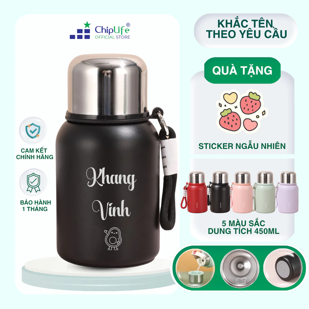 🔥 Bình giữ nhiệt ChipLife BC450 khắc tên dung tích 450ml có quai xách tiện lợi SUS316 đang giảm giá!