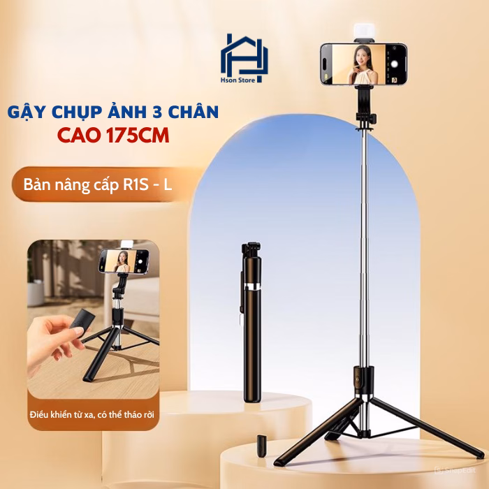 🔥 Gậy Chụp Ảnh Selfie 3 Chân R1S-L 1M75 Điều Khiển Từ Xa Có Phân Loại Đèn Trợ Sáng Tripod Chụp, Quay, Lvestream đang giảm giá!
