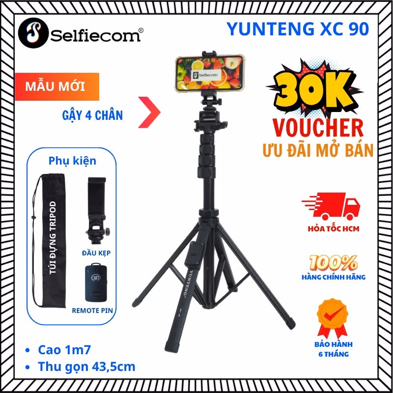 🔥 Gậy Chụp Ảnh Điện Thoại XC 90 – Tích Hợp 4 Chân Tripod, Quay Video, Selfie, Kèm Remote Từ Xa đang giảm giá!