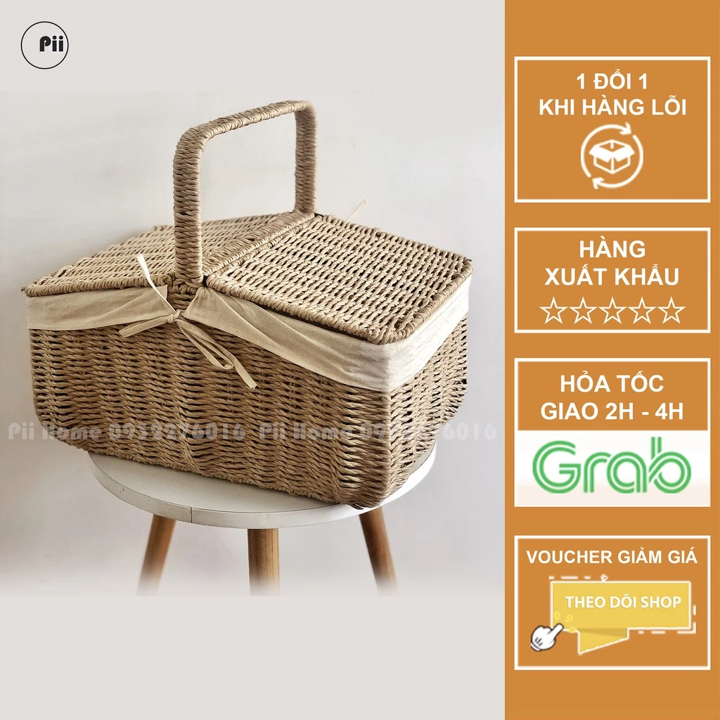 🔥 Giỏ Cói Quai Xách Picnic Camping Kèm Lót Vải, Giỏ Cói Decor Dùng Dã Ngoại Du Lịch Cắm Trại Tiện Ích đang giảm giá!