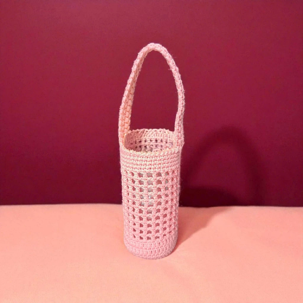 Giới thiệu túi đựng bình nước/lý giữ nhiệt móc thủ công 100% – họa tiết lưới vuông