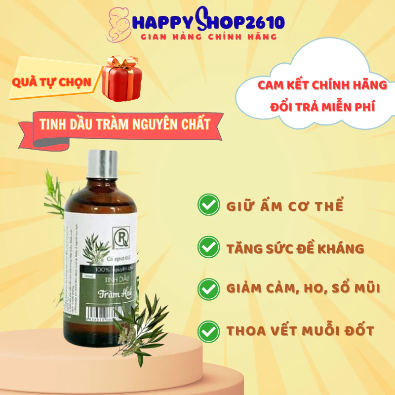 - Nhãn mác: Sản phẩm tinh dầu tràm Huế thật thường có nhãn mác rõ ràng, ghi đầy đủ thông tin về sản phẩm, nhà sản xuất và hướng dẫn sử dụng.