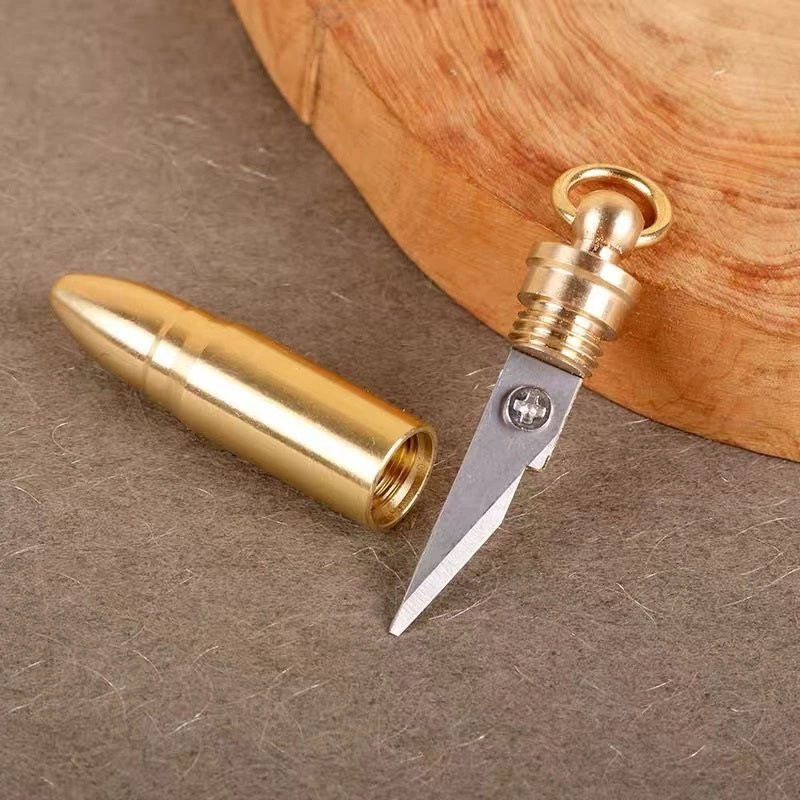 Móc khóa đồng thau hình đạn kiêm trụ dọc giấy là một sản phẩm móc khóa sinh tồn được làm từ chất liệu đồng thau bền đẹp. Sản phẩm này không chỉ có chức năng móc khóa mà còn có thể dùng để cắt dây thừng hoặc mở hộp trong tình huống khẩn cấp.