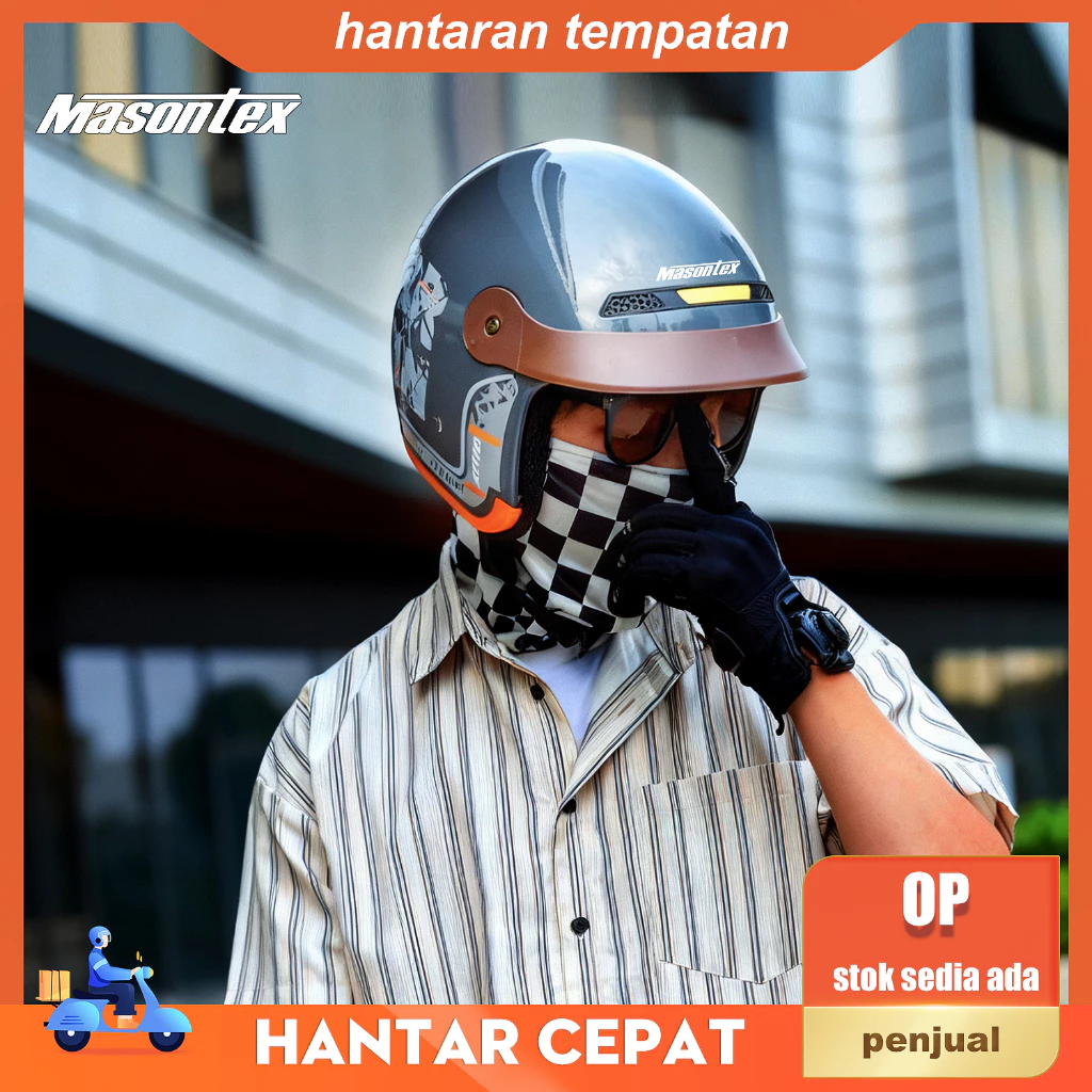 🔥 Nón bảo hiểm Masontex 702 nam nữ nửa đầu có kính gập chống bụi nắng, size 52–64cm thời trang cá tính đang giảm giá!