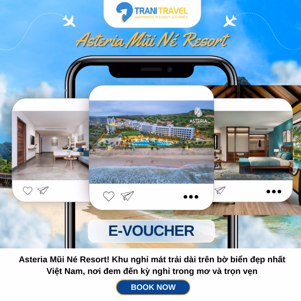 [Trani Travel] E-Voucher Asteria Mũi Né Resort là một lựa chọn tuyệt vời cho những ai muốn trải nghiệm resort cao cấp tại Mũi Né mà không muốn chi tiêu quá nhiều.